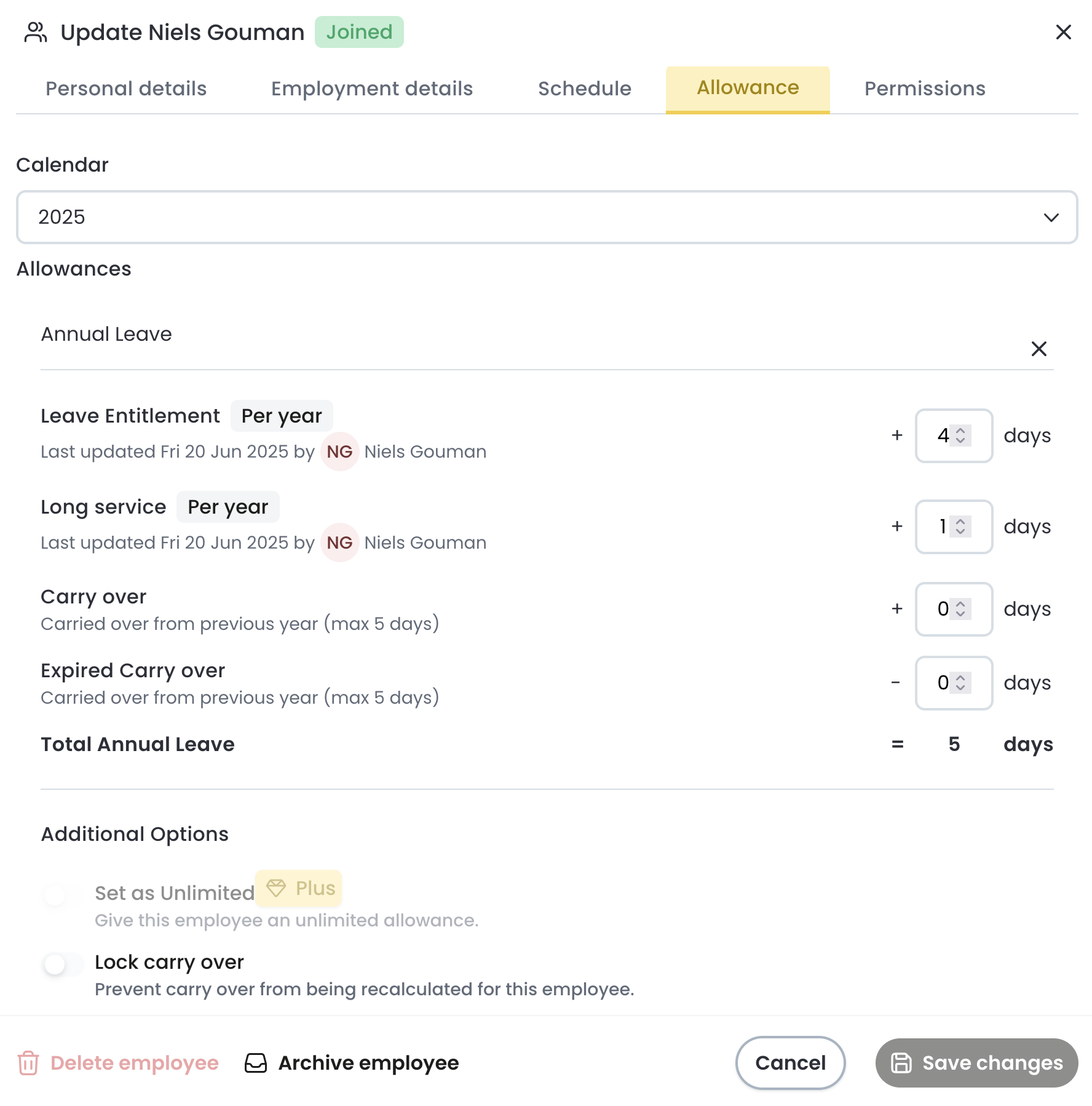 - Set the default values for new employees in the Settings > Allowances page.